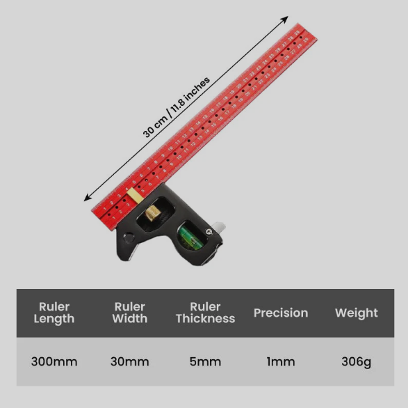 🔥Combination Square Ruler 45-90 degree Marking📏